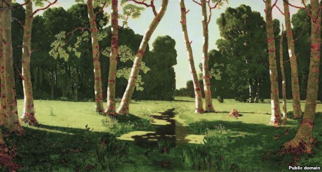 Среди них несомненно «Березовая роща» – очередной шедевр. Светлый, радостный день передан за счет контраста разных оттенков зеленого, розово-белой гаммы березовых стволов, нежно-голубого неба.