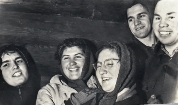 1959.07. Подмосковье. «Ляна»: Тамара Константинова, Лев Хямяляйнен, Татьяна Фонарёва (Пиголкина), Светлана Солодченкова