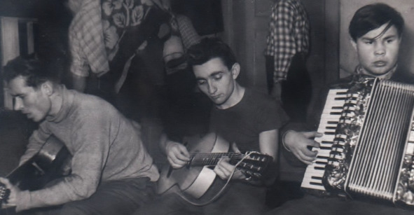«После 15—20 км на лыжах с рюкзаками, тремя гитарами и двумя аккордеонами нас радостно встречали собравшиеся зрители, часто – уже в натопленном клубе.