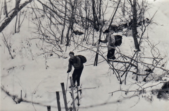 «…Благодаря моральной поддержке Вити Дубнера я всё же решился принять участие в агитпоходе. Комиссар похода Лазутин Лёня построил нас. После его проникновенной напутственной речи мы на лыжах, навьюченные рюкзаками с собственными вещами и реквизитом, прямо с места сбора отправились в поход, уточнив в районе Долгих прудов по карте наш дальнейший маршрут.