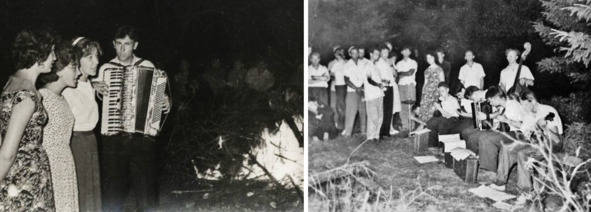 1959.07. Подмосковье. «Златы колечики»: Тамара Константинова (Иосиф Рабинович, Вадим Авраменко). На фото справа: это не лекция, а стихи о любви: Иосиф Рабинович