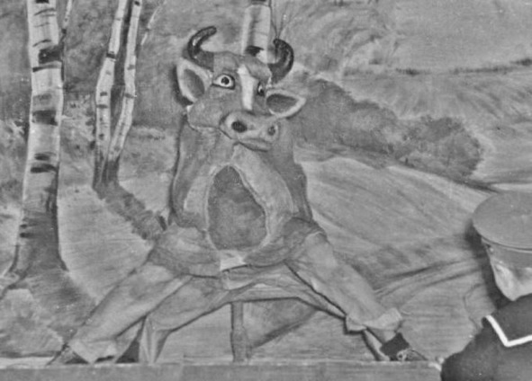 Танец нашей Коровы всегда вызывал удивительную реакцию и шум в зале. Поскольку мы всегда фантазировали, то кто-то из ребят однажды предложил впустить Корову в тёмный зал через входную дверь за последним рядом. Ведущий со сцены увлёк слушателей очень эмоциональным прочтением басни, а Корова тихонько шла по тёмному проходу к сцене. Где-то на середине зала Корова останавливается и аккуратно и нежно кладёт голову на колени сидящей с краю паре. Реакция: от крика ужаса до дикого хохота соседей.
