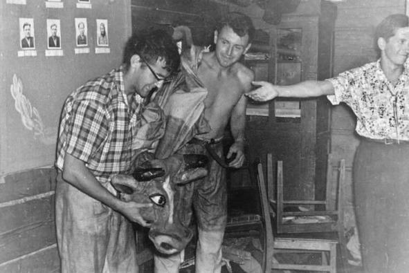 Начинала Корова с русских танцев, но потом освоила модные, но не одобряемые властью рок-н-ролл и твист (мы сами смеялись до слёз). Задние ноги Коровы в исполнении Стаса Зимина радовали акробатическими элементами.