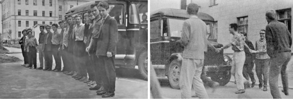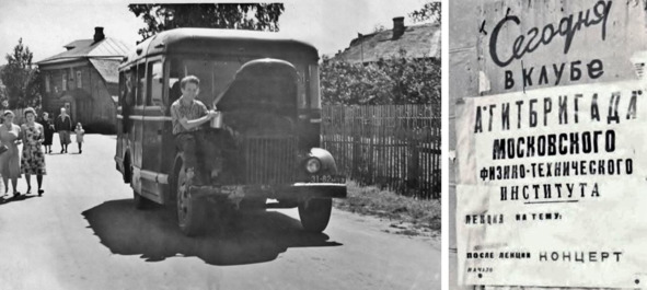 «…С волнением взялась за воспоминания. Нас в Талдомский район вёз наш физтеховский автобус. Шофёром из нашего автопарка был незабвенный бородач Алексей Никифорович. Автобус небольшой, в нём могли сидеть не более двадцати человек, а ещё нужно было везти всякие костюмы и музыкальные инструменты: гитары, контрабас, кларнет, барабан и др. Да, ещё везли Корову, но она много места не занимала, только муляж головы и накидка, под которой прятались бы два участника номера.