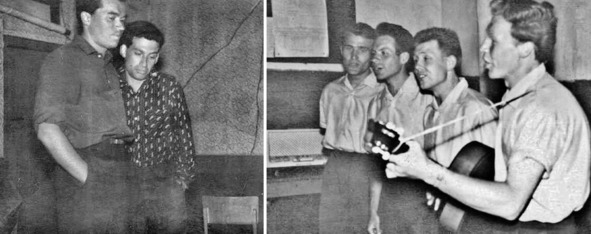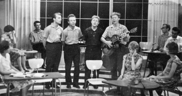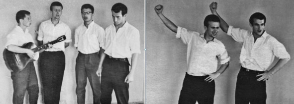 1963.07. Стас Зимин, Михаил Николаев, Марат Кузьменко, Валерий Ириков. Справа – «Крокодил»: Михаил Николаев, Валерий Ириков