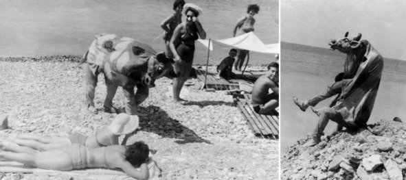«Обстановка» развивалась постепенно… Под моим присмотром Корова вышла из палатки и прошла мимо столовой и административного здания лагеря, после чего вальяжным аллюром и широко размахивая хвостом, произнося местами «Му!..» (о рогах, на которых висел венок из рыжих одуванчиков, я не говорю!), направилась к лестнице, ведущей вниз, к пляжу, где к тому времени собралось уже много отдыхающих.