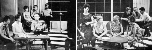 1964.07. Душанбе. Выступление на ТВ. Ю. Курочкин, Т. Воскресенская, В. Мироненко, Н. Сейфулина, Я. Малашко, М. Фёдоров, ведущая, Ю. Медведев, Н. Белёнова, М. Селивёрстова, С. Яковлев, Ю. Лукашов, И. Коган