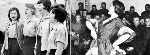 1965.02. Таджикистан. Пяндж. Ох уж эти бракоделы: Владимир Саломыков. Справа – русский танец: Татьяна Воскресенская, Владимир Саломыков
