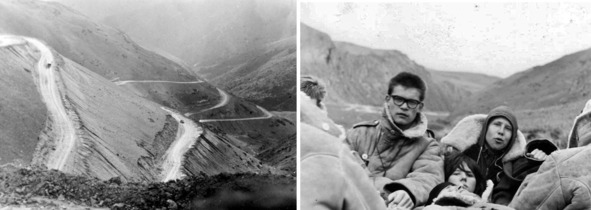 1965.07. Тянь-Шань. Тракт Ош – Хорог. В пути: Сергей Бирюков, обычно фотограф, Наталья Сейфулина, Александр Яковлев