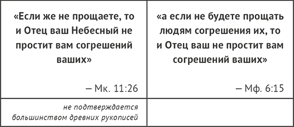 На 20 тысяч стихов Нового Завета насчитывается всего 40 смысловых разночтений, то есть коэффициент искажения этого текста – 0,2 %. Причём цифра эта постоянно сокращается с открытием всё новых и всё более древних рукописей, позволяющих уточнить одно за другим эти «трудные места». И, конечно, это никакая не тайна за семью печатями, хранимая от неискушённых верующих в непогрешимость Слова Божия. В современных изданиях эти строки сопровождаются сноской «не подтверждается большинством древних рукописей». И, что ещё важнее, так это, что большинству этих строк несложно найти пару в параллельных текстах, где они очень даже подтверждаются древнейшими рукописями. Не случайно же в новозаветный канон входят четыре Евангелия, во многом перекрывающие друг друга. Если в одном из них тот или иной стих вызывает сомнения учёных, его содержание, а иногда и точную копию можно найти в другом.