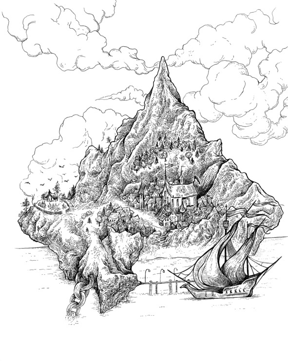 Но не только цепь была сомнительным подарком новых владельцев плавучей скале. После того, как короля Римрила вынудили покинуть трон в пользу старшей сестры больше десяти лет назад, они прибыли сюда – аристократы, ученые, торговцы, главы расформированных гильдий, служители искусства, мастера всех мастей, бродяги и разбойники. Они основали поселение, которое затем выросло в большой город, не похожий ни на какой другой благодаря главному закону: никто и никогда не должен спрашивать другого о его прошлом.