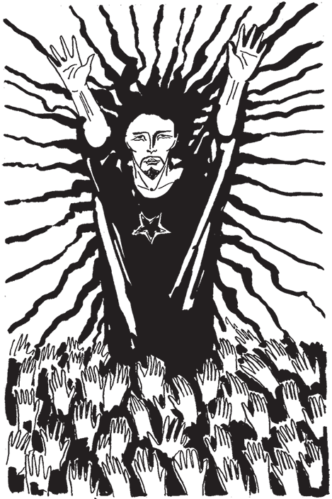 – Мы используем три шестерки – символ Мессии, пятиугольники – символ Планеты, звезды вершиной вверх – символ могущества освобожденного человека, а также звезды вершиной вниз как символ Созидательной Силы Природы.