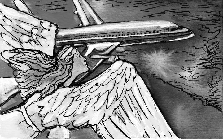 Ангел Иоанн летел рядом с авиалайнером, держась за обледенелое крыло, смотрел сквозь подернутое инеем окно на Аннушку и шептал ей слова утешения: