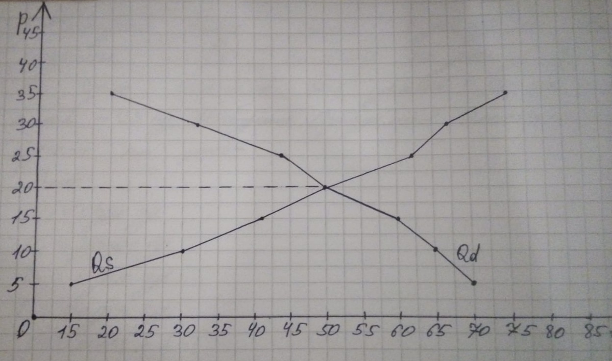 2) Спрос и предложение котлет описывается значениями: Qd=2400-5P; Qs=500+2P. Найдите равновесную цену котлет и их спрос, если государство ввело потоварный налог в размере 20 ден.ед.