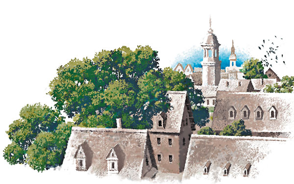 Сейчас ему, правда, замок виден не был. Он шагал по тесной Ивановской улице, с которой можно было увидеть только небо, если задрать голову. Вдоль улицы вплотную друг к другу стояли каменные амбары, мастерские и дома с узкими фасадами и высокими фронтонами. Окна в домах шли в два яруса, если не считать маленьких окошек, украшавших фронтоны.