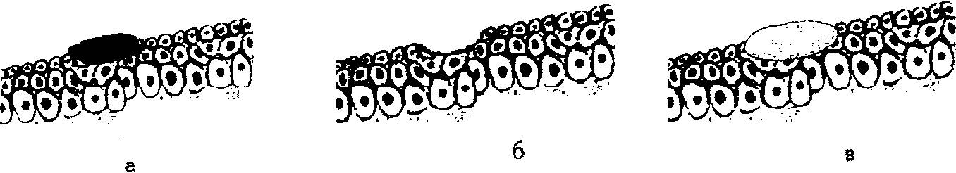 Рис. 4. Пораженный орган. а – злокачественная опухоль; б – дырка; в – фиброз