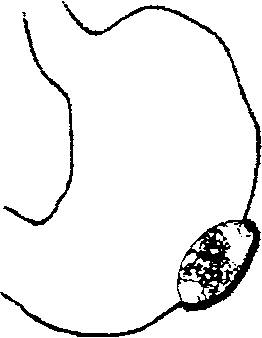 Рис. 3. Желудок: а – злокачественная опухоль; б – язва; в – фиброз