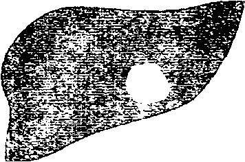При обследовании больных компьютерной томограммой паренхиматозных органов (печень, легкие, почки, головной мозг и т.д.), пораженных опухолью, на срезах процесс замещения ткани злокачественного новообразования фиброзом выглядит так:
