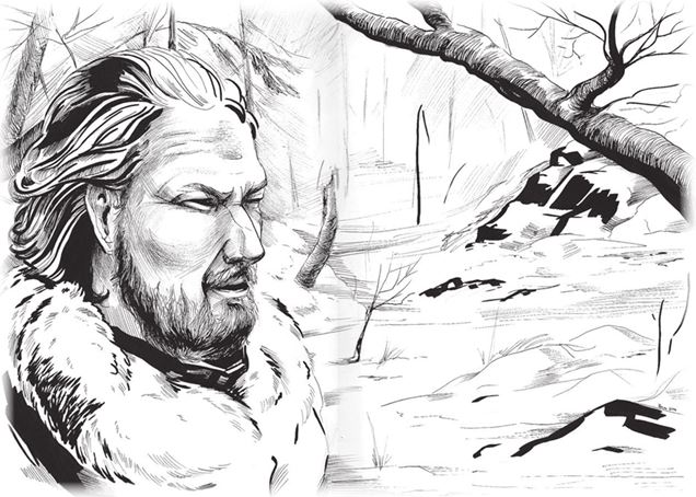 Поспешным шагом он устремился вниз, к подножью холма. Налетела вьюга, ослепившая странника так, что тот перестал видеть дальше собственного носа – снег нещадно бил в лицо и тем самым задерживал человека. Перестав обращать внимание на вьюгу, путник устремился вперёд, к входу в лесную чащу. Немного не дойдя до нужного места, странник поранил правую ногу об острый камень, сокрытый под слоем снега. Не придав ранению серьёзного значения, он удвоил усилия по преодолению снежной бури, в конечном итоге настигшей его. На удивление, при всех своих хаотичных движениях, человек не потерял связь с основной дорогой на север, как раз пролегающей через этот лес. Интересно и то, что после захода в это природное владение основная тропа, отходящая от главного тракта, по которому шёл путник, не была покрыта толстым слоем снега – она была ясно видна глазам странника, и его потребность в посохе поубавилась. Пройдя порядка пятидесяти шагов по лесной тропе, путник не раз оглядывался, чтобы убедиться, что ему всё это не мерещится, ибо после захода в лес можно заметить, что при страшной снежной буре, буйствующей за пределами деревьев, внутри лесного владения стояла оглушительная тишина. Отсутствие дуновений ветра, тёплый загустевший воздух, мрачные и по большей части не покрытые снегом деревья – всё выглядело так, будто здесь стоял конец осени, а не середина зимы.