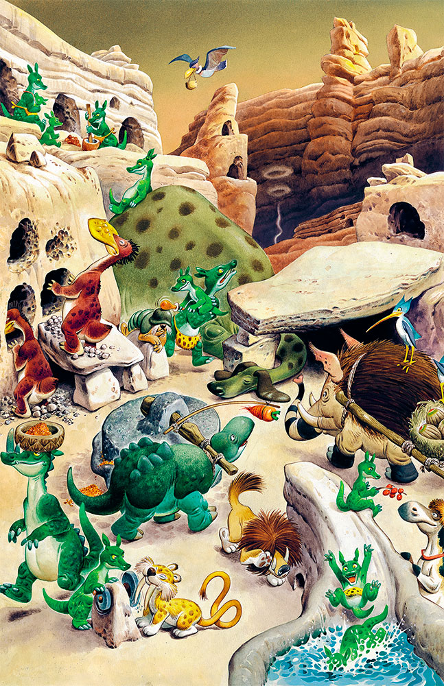 Жители Драколандии не ленивы и выносливы. Они давно могли бы жить припеваючи. Но всякую работу всегда делают наспех. Да и смекалки им не хватает улучшить свою жизнь. Например, выдолбят дракозавры в склонах гор пещеру, но жильё получается неуютным. Целый день вращают жернова, но не догадываются построить мельницу.