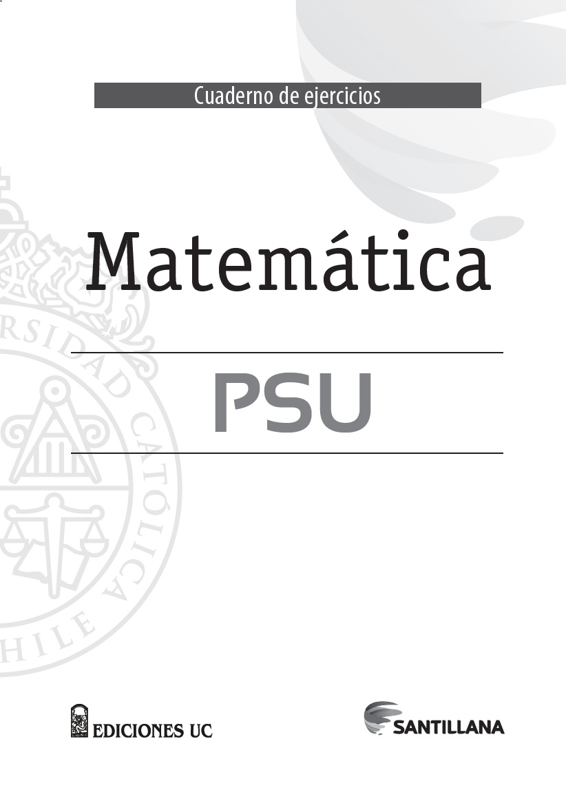 El Cuaderno de ejercicios Matemática PSU es una obra colectiva, creada y diseñada en alianza entre Ediciones UC y el Departamento de Investigaciones Educativas de Editorial Santillana.