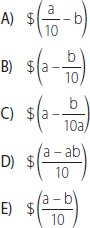 23. Una deuda de $ a se cancela con $ b al contado y el saldo en 10 cuotas iguales. ¿Cuál de las siguientes alternativas representa el valor de cada cuota?