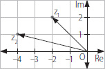 16. En el plano de Argand se han representado los números complejos z1 y z2. ¿Cuál es el resultado de z2 – z1?