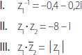 II. Si Re(z2) = –2, Im(z2) = 4 ⇒ z2 = –2 + 4i.