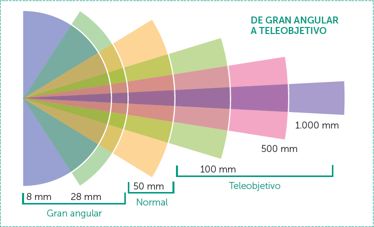 Según el ángulo de visión de la lente, podemos establecer tres categorías; angulares, estándar y teleobjetivos.