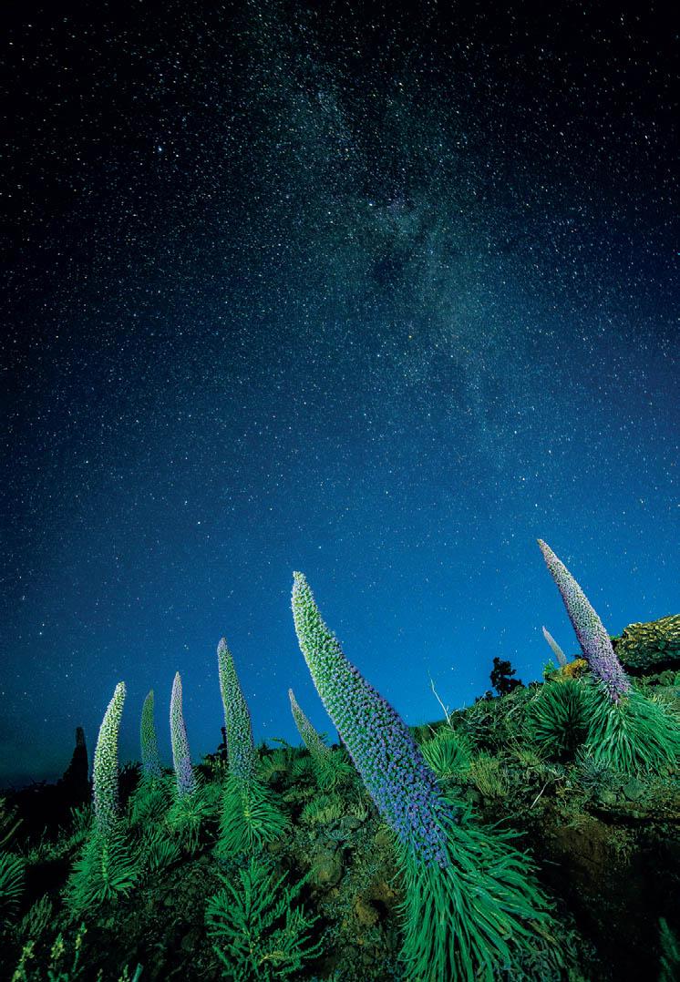 Un frontal de leds es algo imprescindible en nuestra mochila, pero si además podemos sacarle partido en el aspecto fotográfico, sus utilidades se multiplican. Pintar con luz los tajinastes en la noche profunda de La Palma, puede suponer un reto importante, pero las posibilidades también son infinitas.