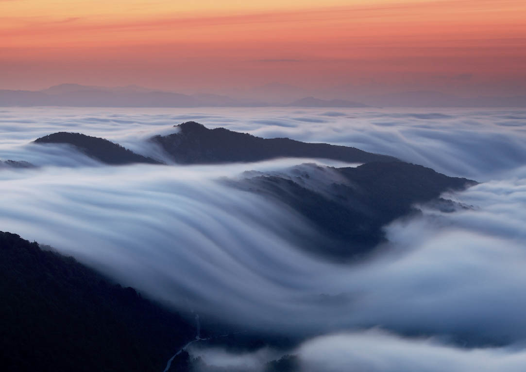 Una exposición lenta añade movimiento al mar de nubes sugiriendo la idea de un lento e indefinido discurrir del tiempo.