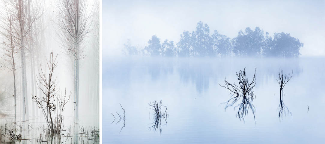 Un proyecto abierto con un planteamiento original, donde David Frutos Egea, paralelamente a una propuesta estética, formula una llamada de atención sobre la fragilidad de la vegetación de algunos ecosistemas pantanosos. Con el agua y la vegetación como principales protagonistas, reflexiona sobre el efecto que provoca el crecimiento desmedido del nivel del agua en el ecosistema, manifestado en la progresiva muerte de plantas y árboles. El agua, asociada a fuente de vida, es aquí sinónimo de muerte y desaparición. Fuertemente influenciado por el minimalismo en blanco y negro de fotógrafos como Michael Levin, Michael Kenna o Hengki Koentjoro, el autor recrea este escenario desde el romanticismo, donde plantas y árboles, emergen del agua envueltas en niebla, anunciando como canto de cisne su pronta desaparición.