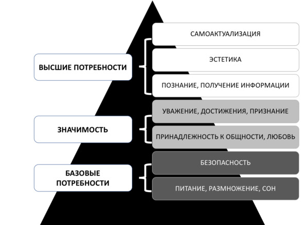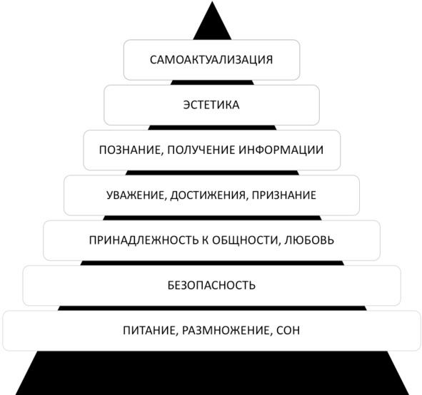Давайте разберёмся с пирамидой. Чтобы не рассматривать каждую её ступень отдельно как самостоятельный предмет, объединим ступени потребностей в группы для более простого изложения и понимания дальнейшего материала.