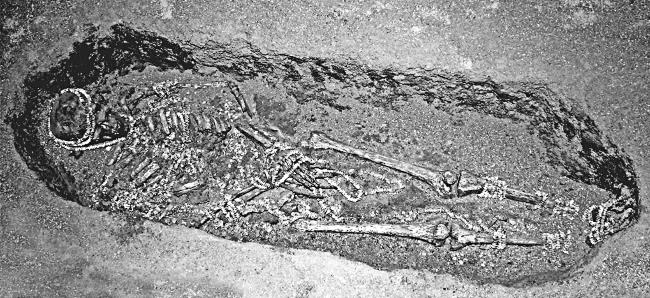 Стоянка Сунгирь (близ Владимира), погребение пожилого мужчины, умершего 23 тысячи лет назад