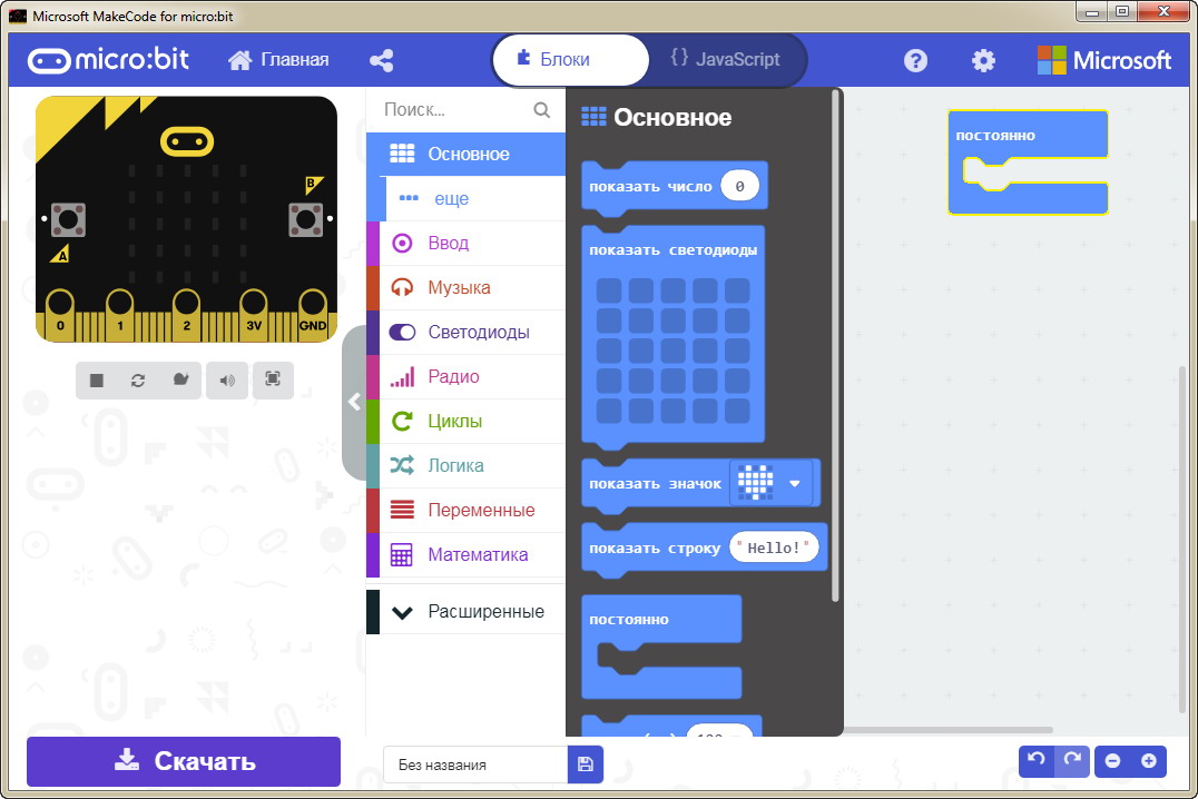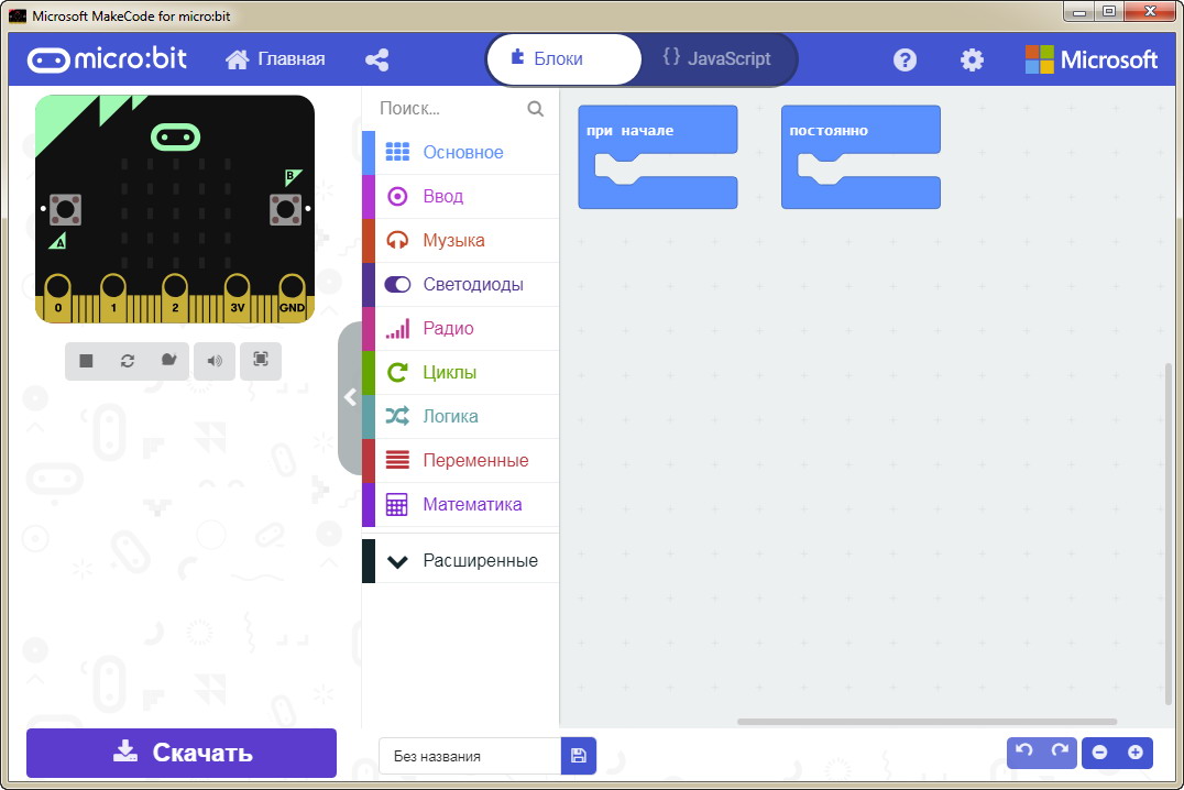 Рис. 1.3. Главное окно программы Microsoft MakeCode for micro:bit