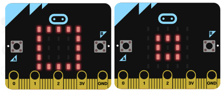 Теперь щелкните кнопку Скачать. После этого подготовленная нами программа загрузится в память микроконтроллера и сразу запустится на выполнение. Вы увидите, что на экране micro:bit будет попеременно отображаться то большой, то маленький квадрат (рис. 1.7).