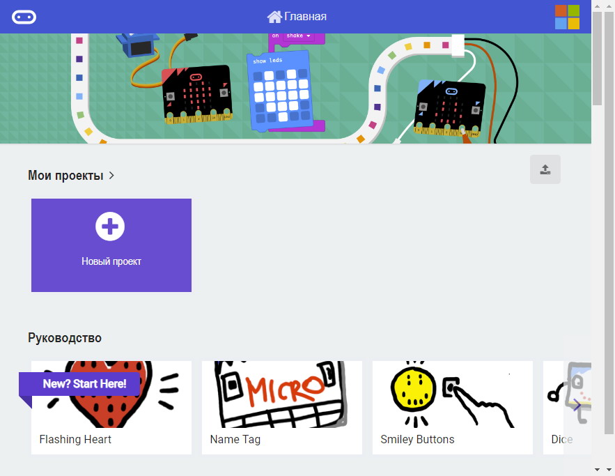 Если нет возможности или желания скачивать и устанавливать на компьютер Microsoft MakeCode for micro:bit, то вы можете программировать micro:bit с помощью браузера, открыв MakeCode Editor на сайте https://makecode.microbit.org/, а также с помощью смартфона или планшета. В этом разделе мы расскажем об использовании браузера.