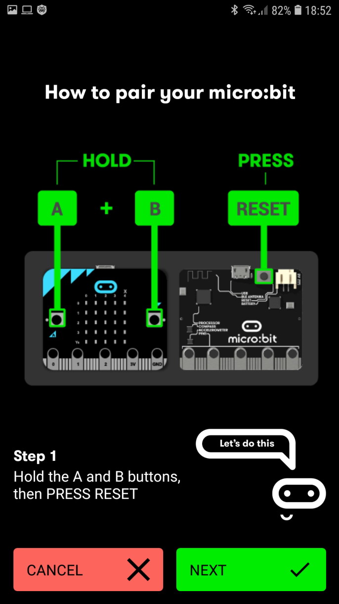 Итак, вы установили на смартфон приложение и разрешили работу Bluetooth. Теперь нужно установить соединение между смартфоном и micro:bit. К сожалению, эта процедура не такая простая, как хотелось бы. Она состоит из нескольких шагов.