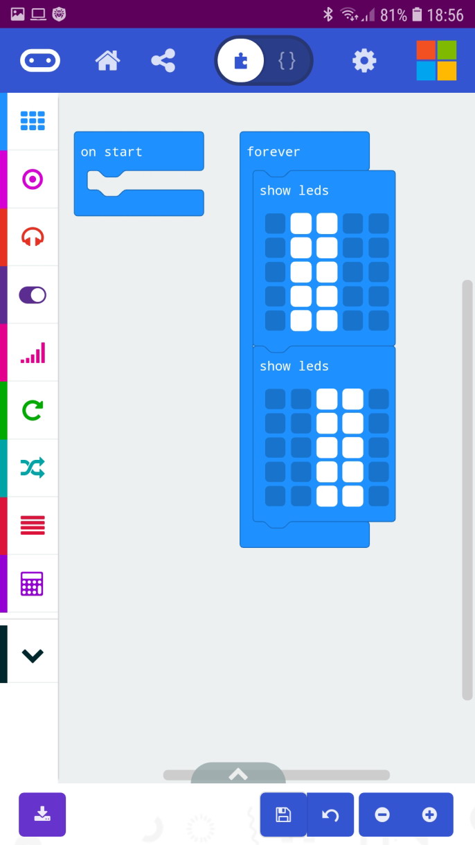 Рис. 1.15. Программа для micro:bit создана при помощи смартфона