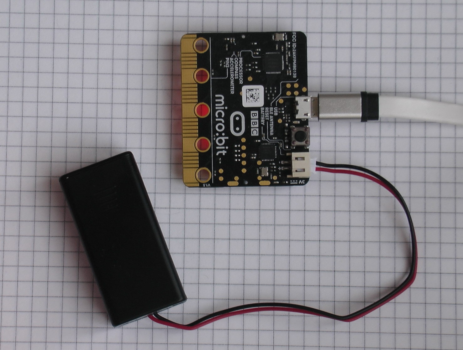 Теперь вы можете отсоединить micro:bit от порта USB и подключить батарейное питание. Загруженная нами программа продолжит свою работу – она остается в памяти микроконтроллера даже при отключении электропитания.