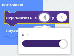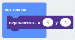Если значение новой координаты по оси X или Y получилась больше 4, то мы задаем для соответствующей переменной нулевое значение. Тут потребуется блок задать значение из палитры Переменные.