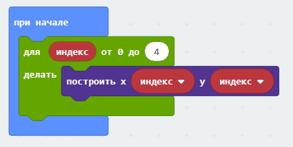 Теперь нарисуем линию по диагонали монитора micro:bit. Для этого измените программу так, как это показано на рис. 2.11.