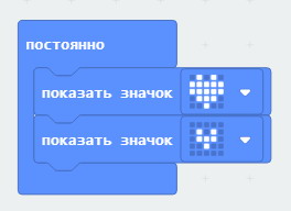 Рис. 2.18. Рисуем в блоке показать светодиоды свои значки
