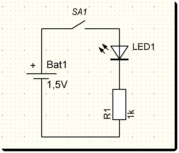 На рис. 3.1 мы добавили обычную кнопку SA1 в схему подключения светодиода к батарейке. Если нажать кнопку, светодиод загорится, если отпустить – погаснет.