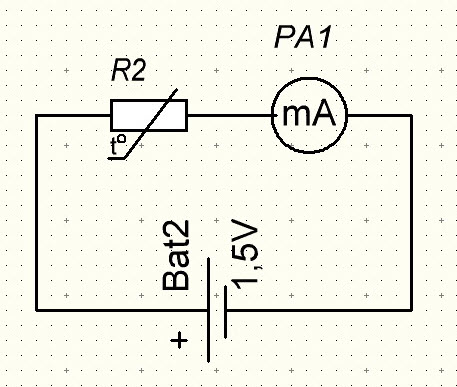 В простейшем случае можно подключить терморезистор к батарейке через миллиамперметр, и проследить за изменением проходящего тока при нагреве или охлаждении терморезистора (рис. 4.1).