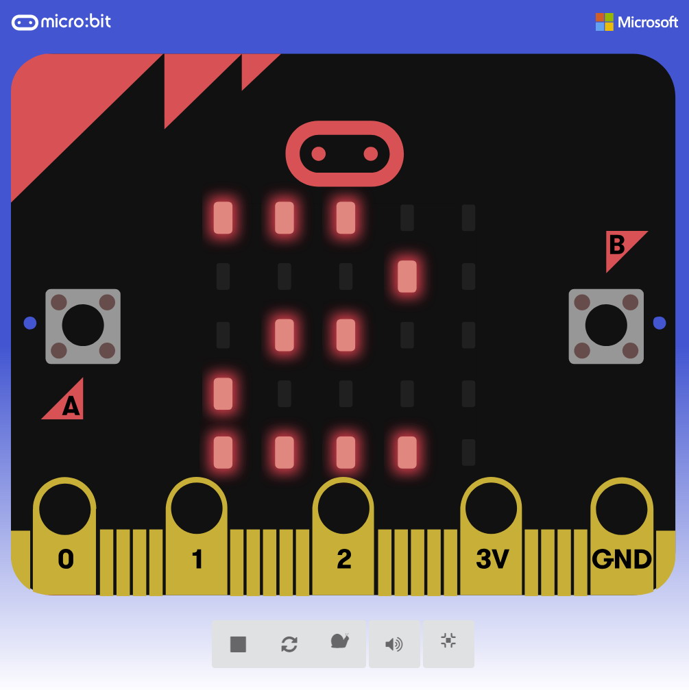 Если нажать логотип, на экране micro:bit появится галочка. Чтобы она исчезла, нажмите кнопку А.