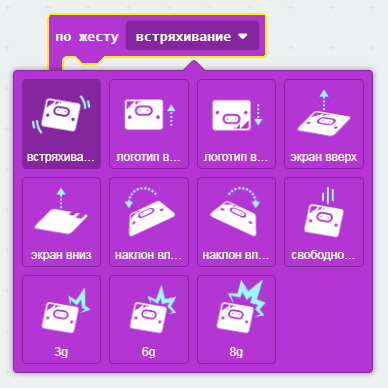 Рис. 5.2. Жесты в микрокомпьютере micro:bit