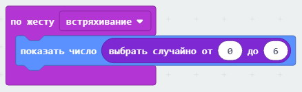 Самое простое что можно придумать с жестами – это сделать игру в кости. Когда вы встряхиваете плату своего micro:bit, на его экране высвечивается случайное число от 0 до 6. Конечно, это упрощенный вариант игры, так как тут мы «бросаем» только одну кость.