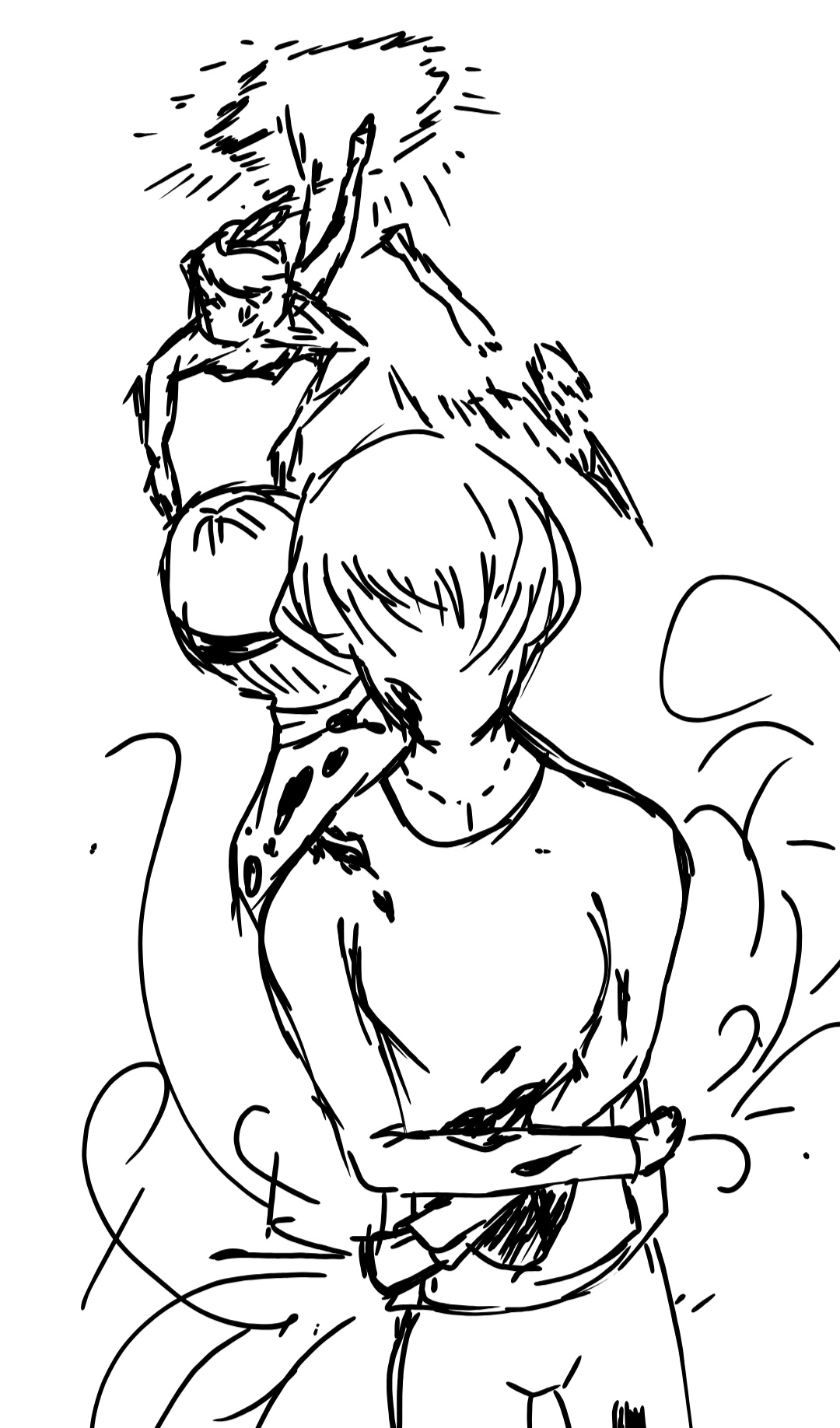 «Зачем она пошла на кухню, неужели она серьезно, но я не смогу. Что это там летит… Нож, битва на ножах? Приготовиться защищаться?! А она быстрая. Мое плечо, а это больнее, но надо использовать свою силу, иначе не смогу победить. Попробую ускориться, что? Она тоже так умеет, она быстрее меня. Черт, второй раз по плечу попала, но я не дам так просто себя убить. Я не ничтожество, не говори так, прекрати, хватит… Я хочу тебя убить».