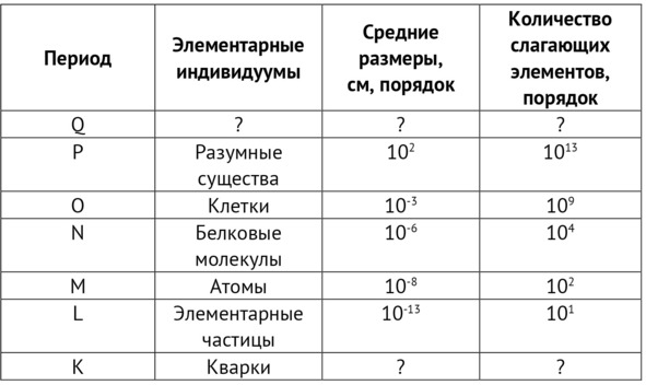 И развитие это стало наиболее перспективным по линии объединения индивидуумов в более сложные индивидуумы более высоких порядков. Только таким образом можно было обеспечить эволюцию внутреннего отражения. Развитие в пределах одного уровня индивидуализации – усложнение индивидуумов – не обеспечивает усложнение внутреннего отражения, отражение переходит на более высокий уровень только при появлении индивидуумов более высокого порядка. В нашей Вселенной это развитие шло по линии частица → атом → молекула → клетка → человек. Соответственно внутренне отражение переходило на более высокие ступени, вплоть до человеческого разума. Мы не можем себе представить, как низшие индивидуумы воспринимают мир, поэтому в нашем языке нет таких понятий. Можно предполагать, что на уровне белковых молекул таким чувством стала биологическая жизнь [Энгельс], а в случае человека – разум.